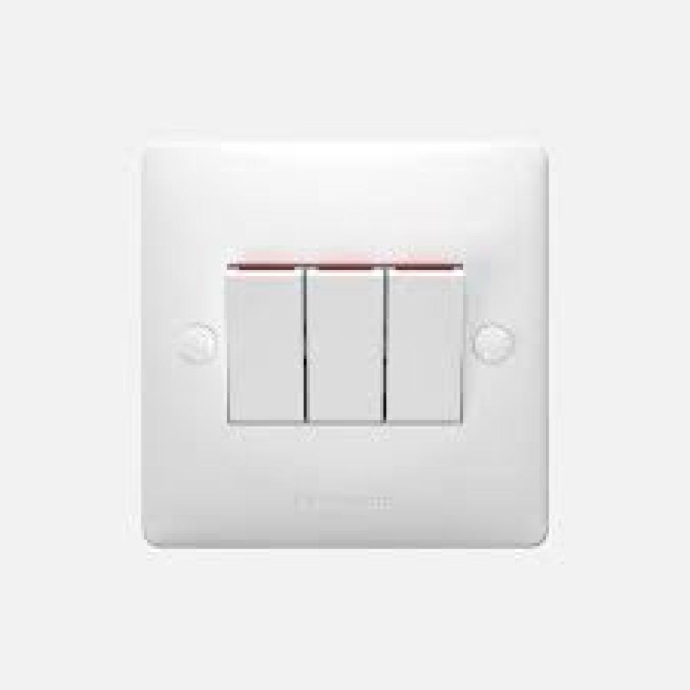 The W1 Series 3 Gang 1-Way SP Switch (WABA5031-N) is a high-quality switching solution designed to control three separate lighting points from a single wall unit. Rated at 10AX, 250V~, this switch features three single pole, 1-way switches and is ideal for modern residential and commercial spaces. The set includes a matching plate for a clean and professional finish.