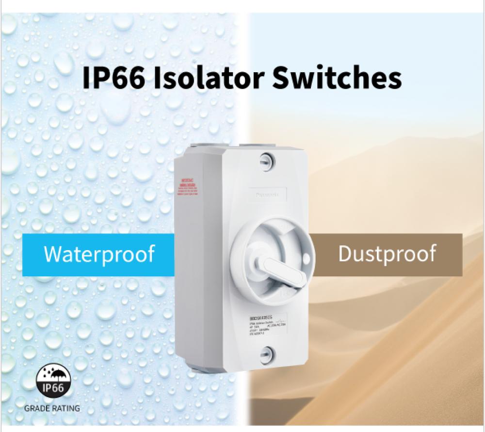 Panasonic IP66 Isolator Switch 2P 20A – Weatherproof (BBDSK220CG)